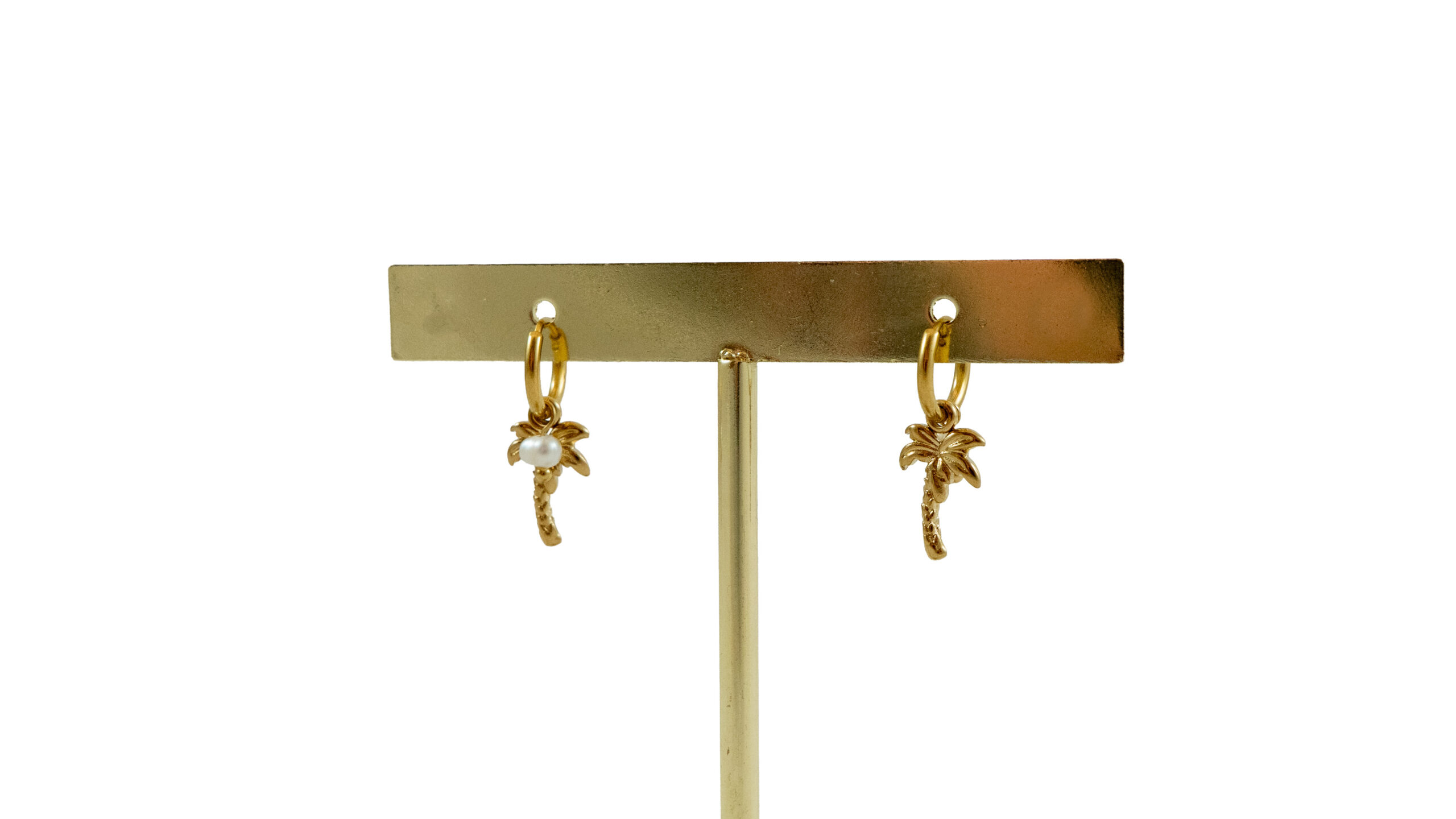 Palmboompjes met parel. Gemaakt van premium goudkleurig stainless steel, dus verkleurt niet!